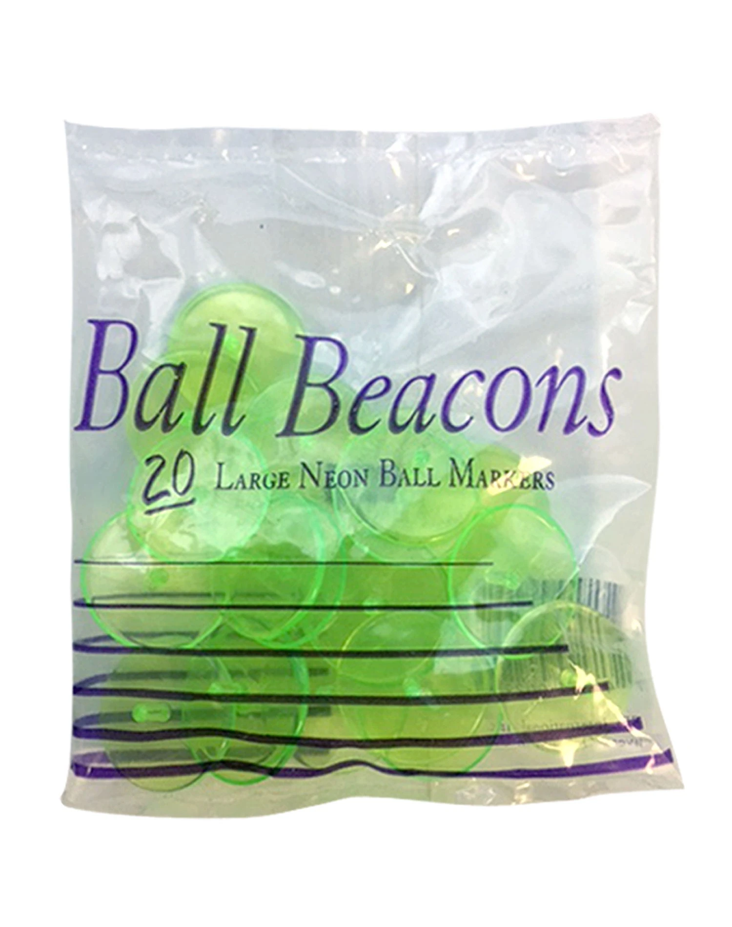 20 count, large, quarter size neon ball markers. Easy to see and find!