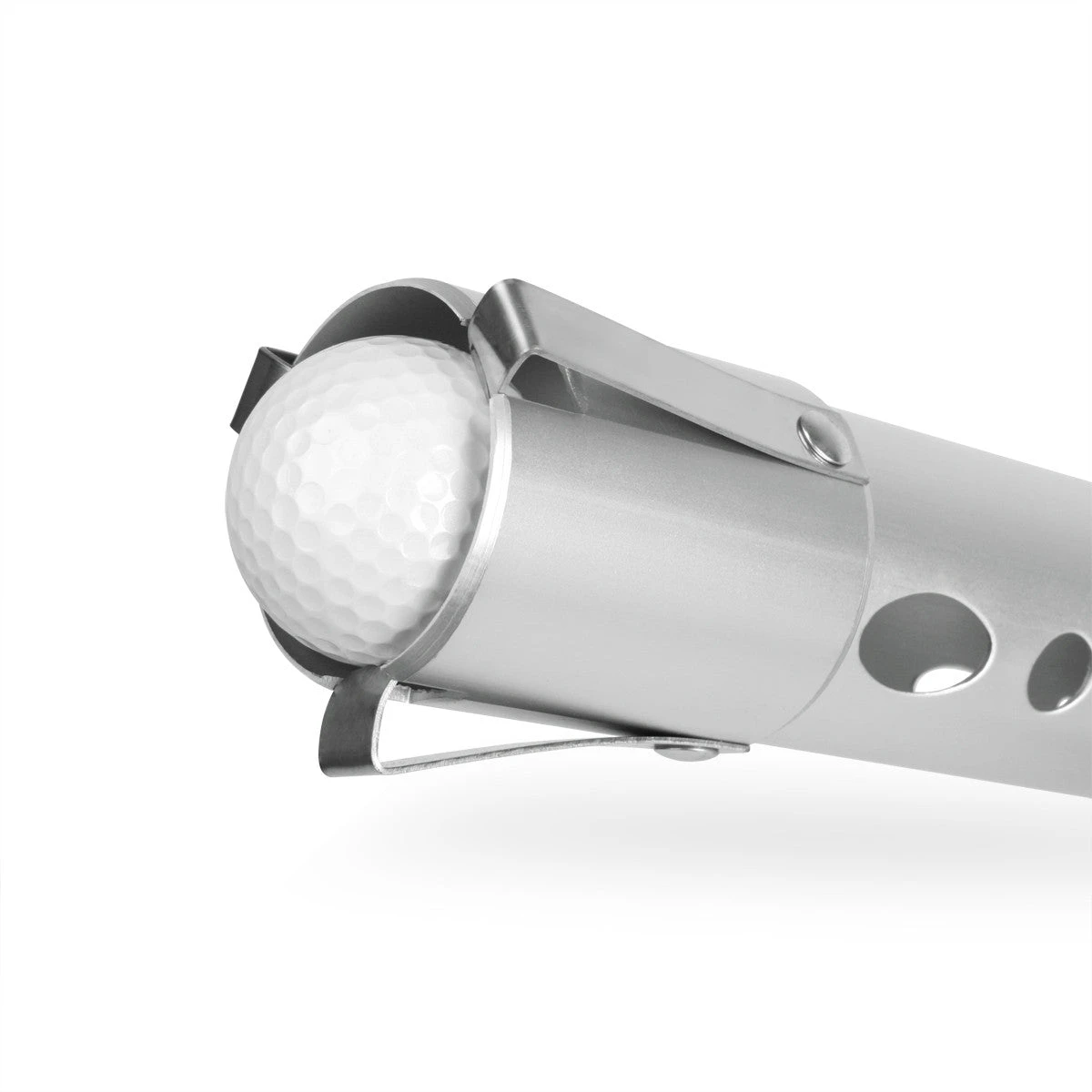 Stop bending over to pick up balls, save time and improve your practice sessions with the Intech Golf Ball Shag Bag! Features: zippered closure, form fitting aluminum handle, spring clips to secure the ball into the lightweight aluminum tube while the oversize nylon pocket stores 80 balls.