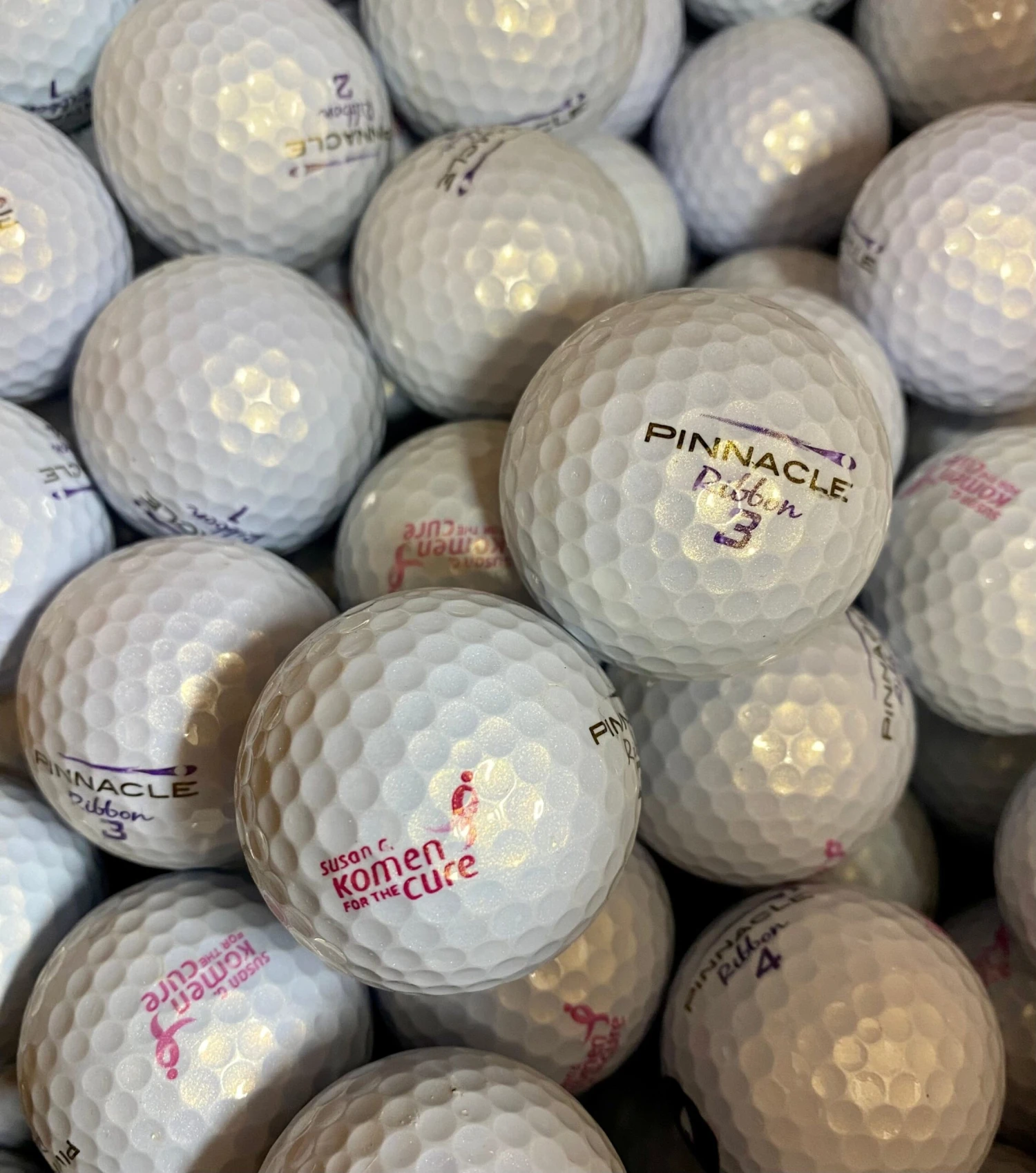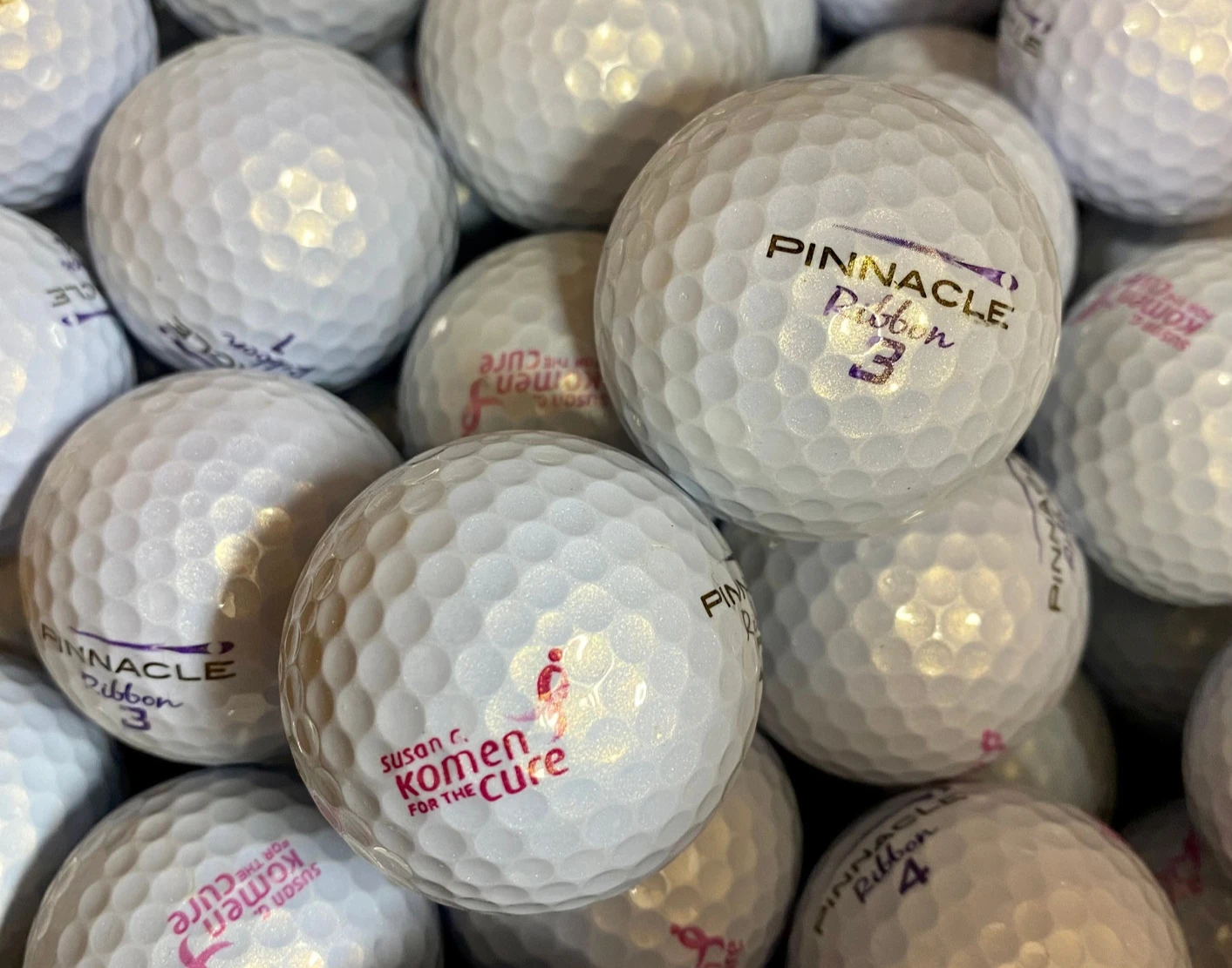 Pinnacle Ribbon-Purple Color, Susan G Komen recycled and used golf balls.